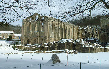 Rievaulx Abbey with decaying experimental furnace in the foreground. Photo: Author)